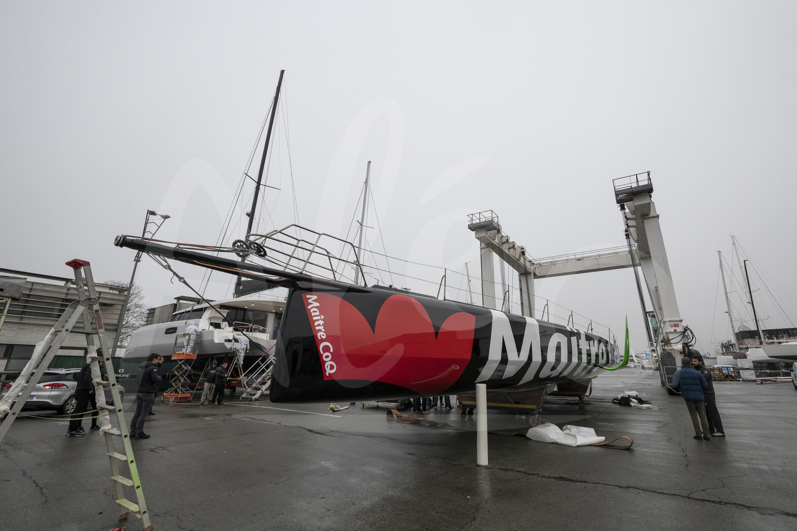 | Description | LA ROCHELLE, FRANCE - MARCH 11: The Imoca boat Maitre Coq is being prepared by skipper Yannick Bestaven and his crew before her launching, on March 11, 2020, in La Rochelle, France. (Photo by Olivier Blanchet/Alea) |