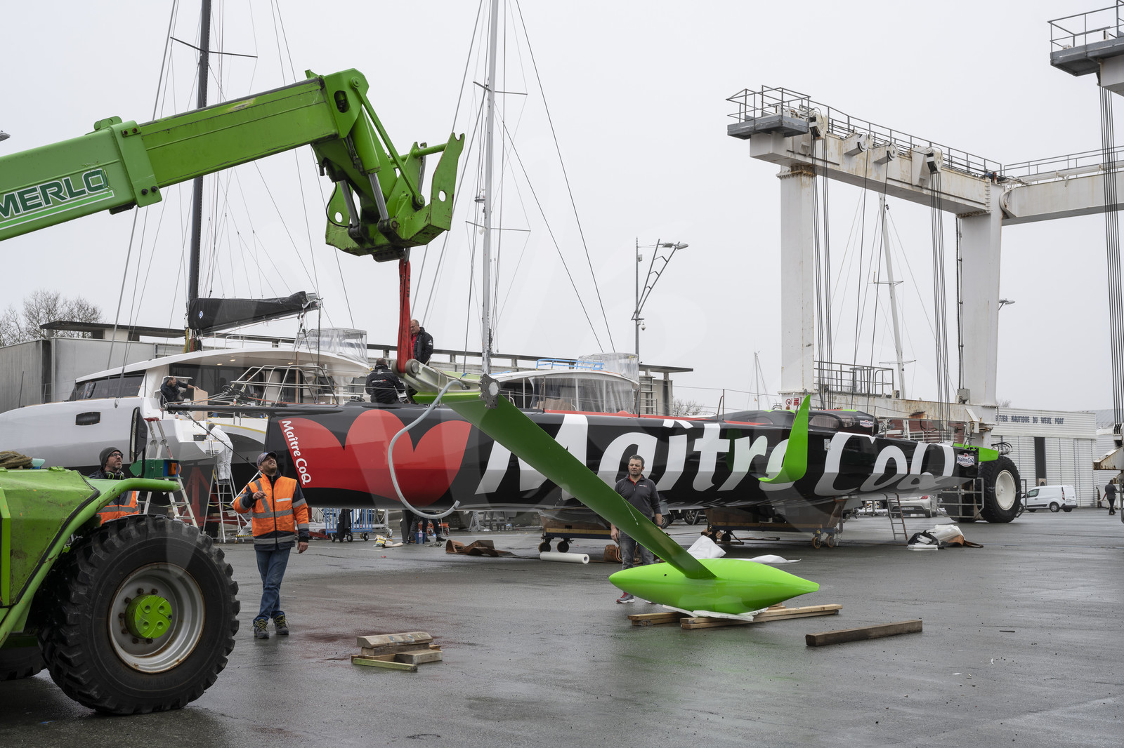 | Description | LA ROCHELLE, FRANCE - MARCH 11: The Imoca boat Maitre Coq is being prepared by skipper Yannick Bestaven and his crew before her launching, on March 11, 2020, in La Rochelle, France. (Photo by Olivier Blanchet/Alea) |