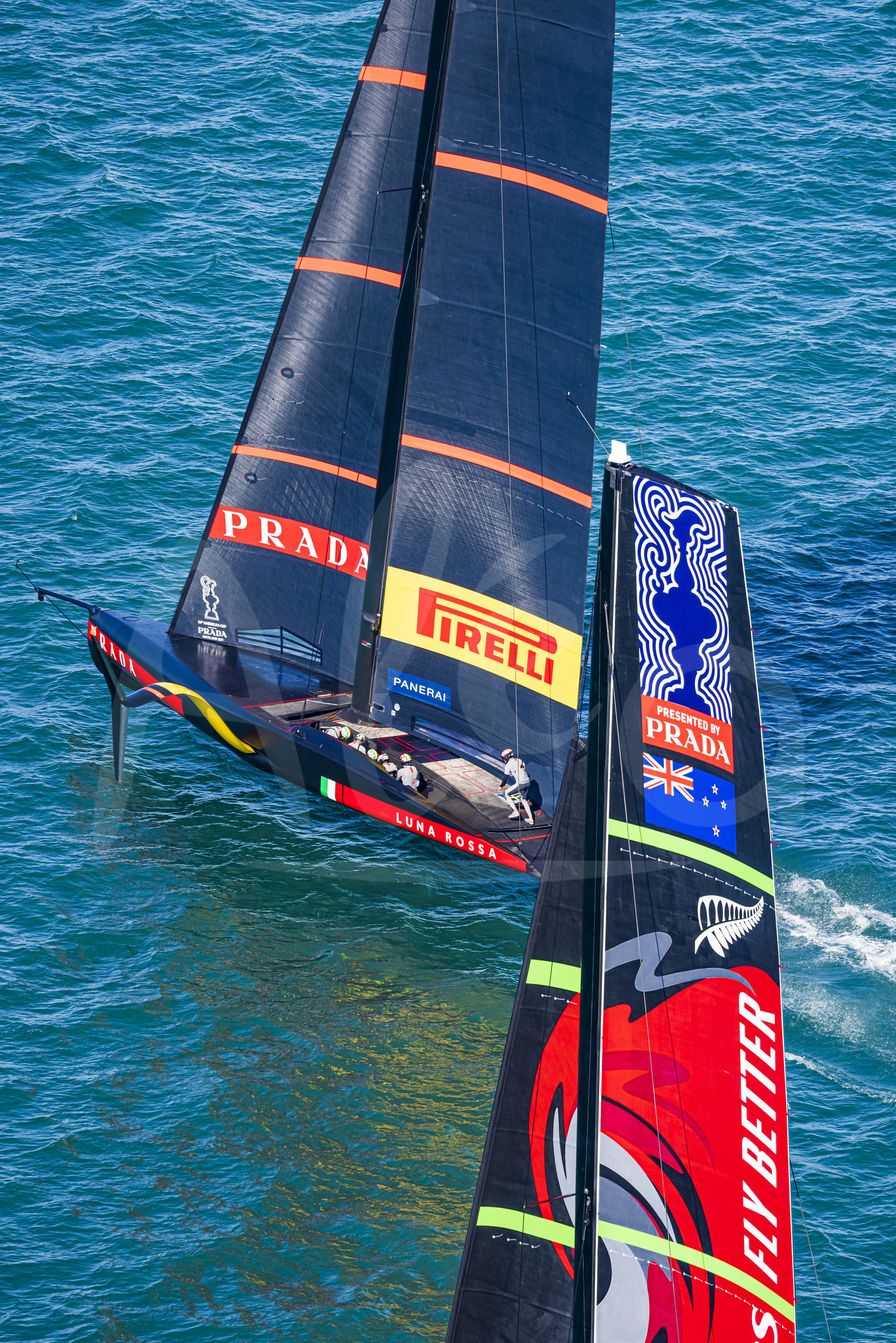 | Description | AUCKLAND, NEW-ZEALAND - MARCH 12: Emirates Team New Zealand and Luna Rossa Prada Pirelli Team compete on day two of the America's Cup presented by Prada, in Auckland, New-Zealand, on March 12, 2021. (photo by Carlo Borlenghi/Alea) |
