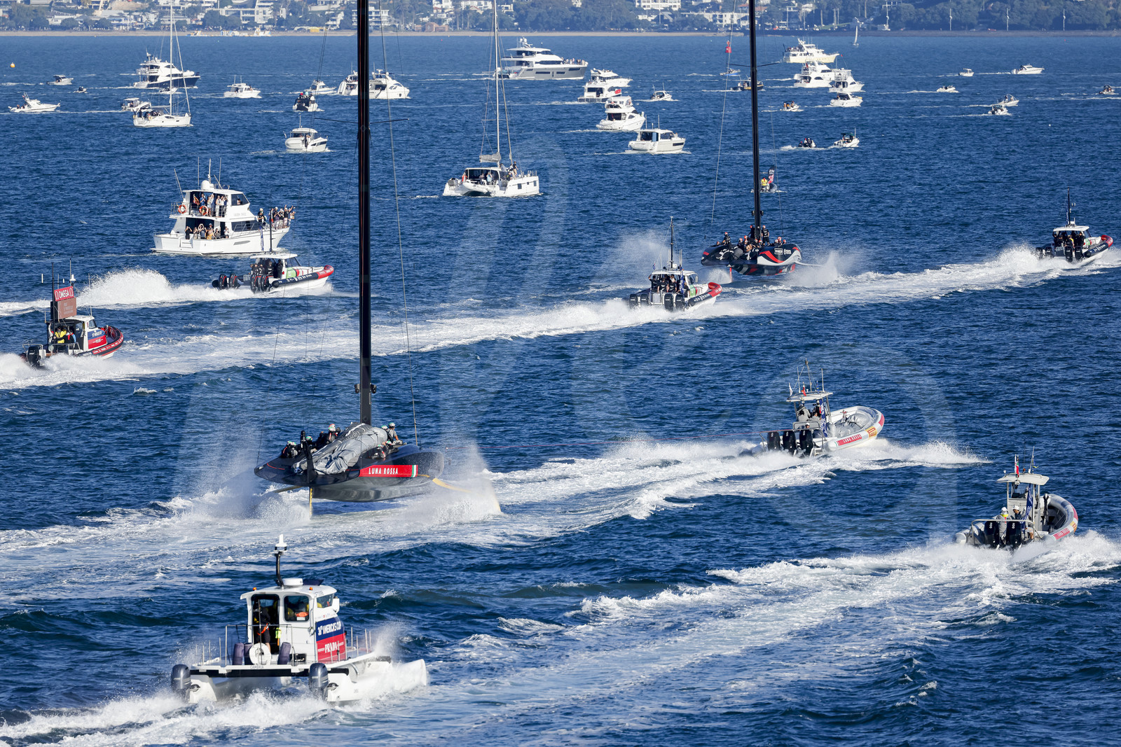 | Description | AUCKLAND, NEW-ZEALAND - MARCH 13: Emirates Team New Zealand and Luna Rossa Prada Pirelli Team compete on day three of the America's Cup presented by Prada, in Auckland, New-Zealand, on March 13, 2021. (photo by Carlo Borlenghi/Alea) |