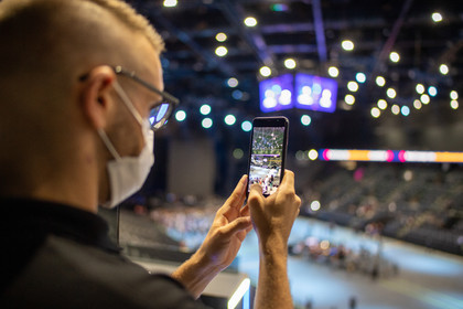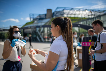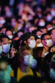 Reportage photo sur le concert-test "Ambition Live Again" organisé par PRODISS et l'AP-HP, qui s'est déroulé à l'AccorHotels Arena (Bercy) le Samedi 29 Mai 2021, avec 5000 personnes sélectionnées et testées pour assister masquées et debout dans la fosse aux prestations du DJ Etienne de Crecy et du groupe Indochine.