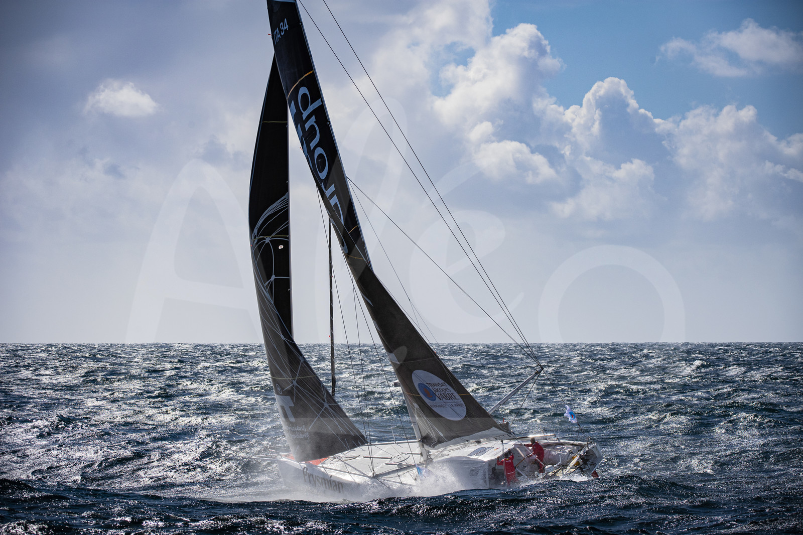 | Description | LORIENT, FRANCE - SEPTEMBER 27: Skippers Giancarlo Pedote and Martin Le Pape are training on the Imoca Prysmian Group, prior to the Transat Jacques Vabre, sailing race in duo from Le Havre to Fort de France, on September 27, 2021 off Lorient, France. (Photo by Bernard Le Bars/ALeA) |