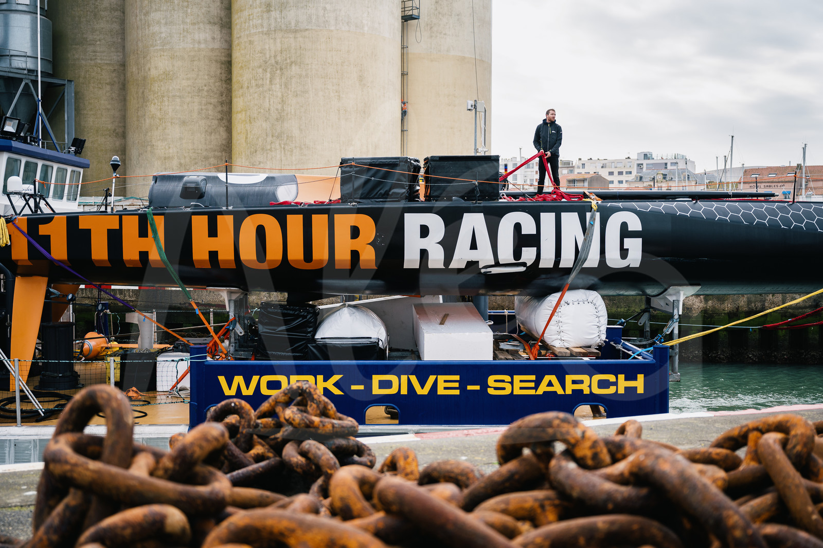 | Description | LES SABLES D’OLONNE, FRANCE - FEBRUARY 10 : French skipper Benjamin Dutreux and his team Eole Performance are receiving their new Imoca boat, ex-11th Hour, for their Vendee Globe 2024 campaign, in Les Sables d’Olonne, on February 10th, 2022. (photo by Jean-Louis Carli / Alea) |