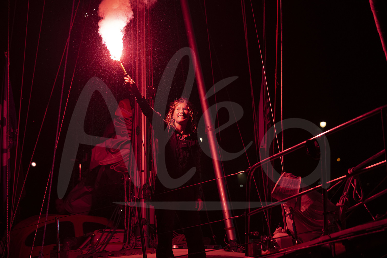 | Description | LES SABLES D’OLONNE, FRANCE - APRIL 27: South African skipper Kirsten Neuschäfer celebrates with flares winning the round the world solo sailing race without any assistance, or electronics, on April 27, 2023 in Les Sables d’Olonne, France. (Photo by Olivier Blanchet/ALeA) |