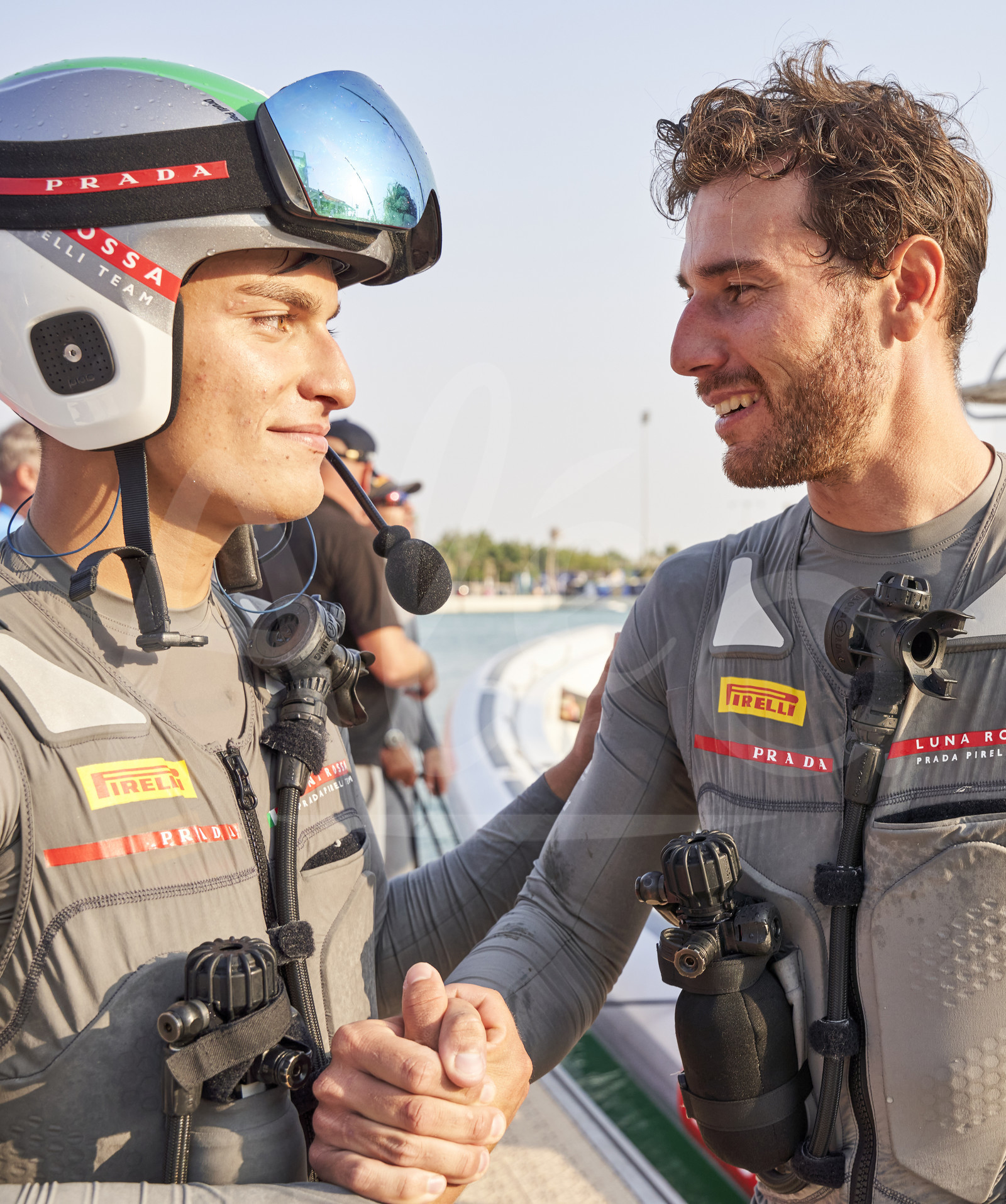 | Description | JEDDAH, SAUDI ARABIA - DECEMBER 02: AC 40 Luna Rossa Prada Pirelli Team are happy taking 2nd place during the Preliminary Regatta held before the Louis Vuitton Cup, in Jeddah, Saudi Arabia, on December 2nd, 2023. (photo by Luca Butto / Studio Borlenghi / Alea) |