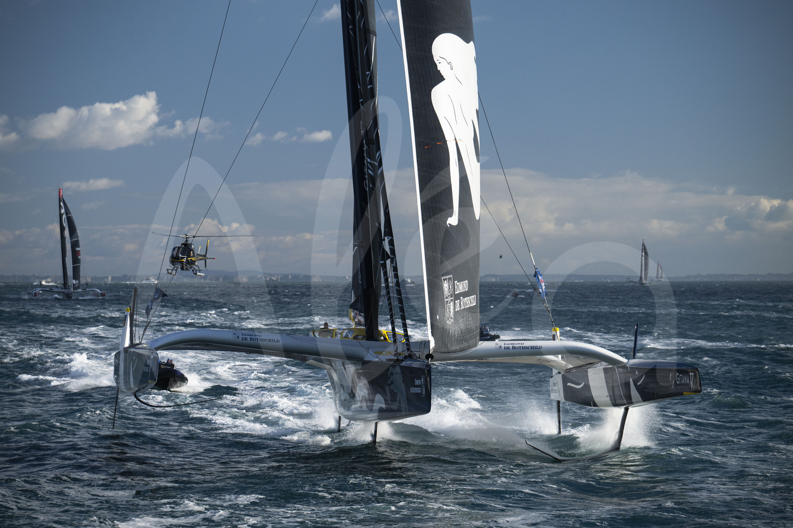 | Description | BREST, FRANCE - JANUARY 07 : Maxi Edmond de Rothschild is pictured during start of the Arkea Ultim Challenge sailing race in Brest, France, on January 07, 2024. (photo by Vincent Curutchet / Alea) |