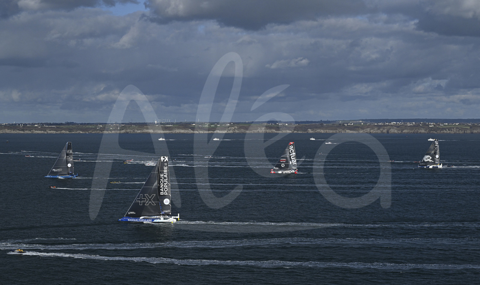 | Description | BREST, FRANCE - JANUARY 07 : Ultim boats are pictured during start of the Arkea Ultim Challenge sailing race in Brest, France, on January 07, 2024. (photo by Vincent Curutchet / Alea) |