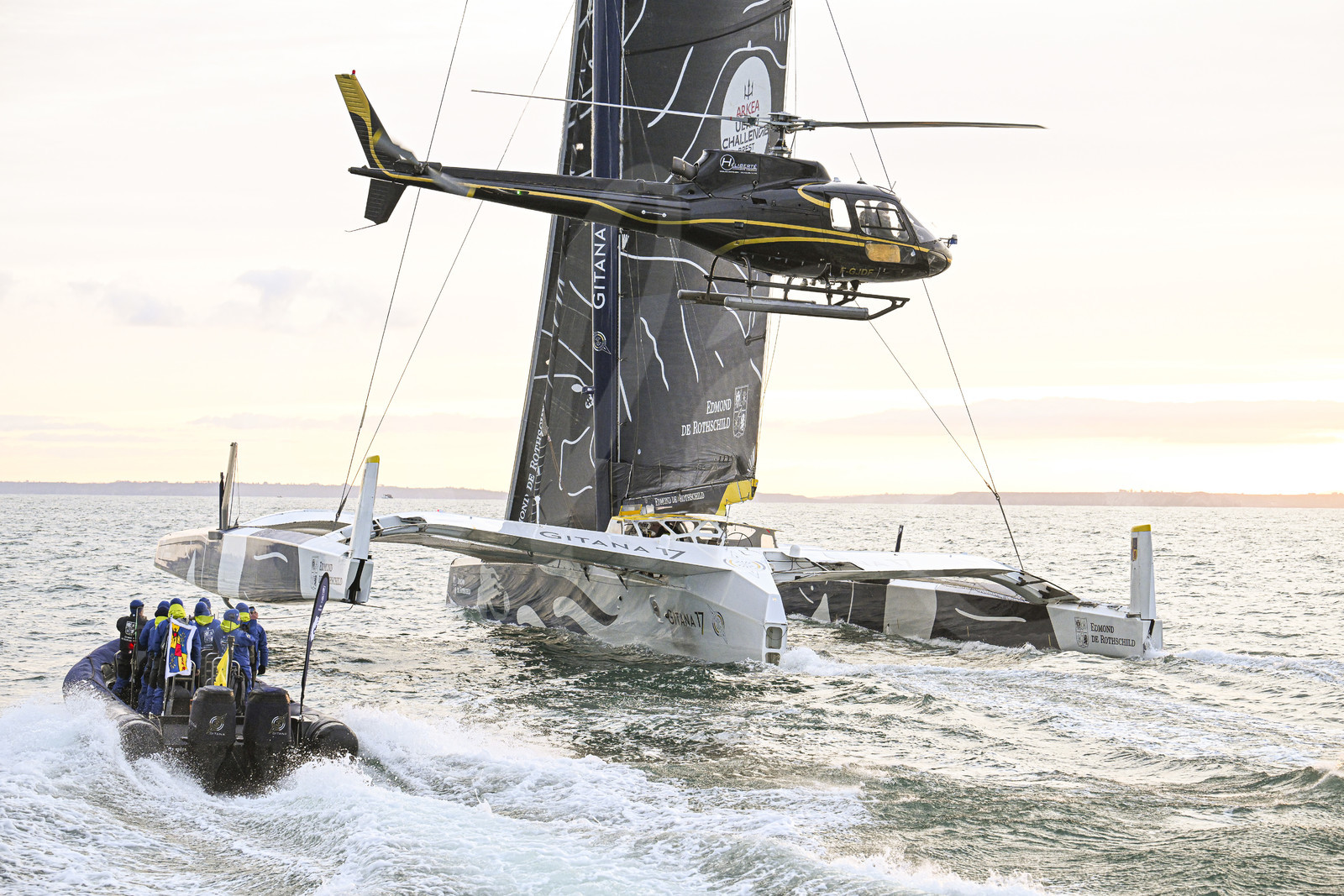 DescriptionBREST, FRANCE - JANUARY 27: French skipper Charles Caudrelier on Maxi trimaran Edmond de Rothschild - Gitana 17 is pictured taking first place of the Arkea Ultim Challenge Brest, on January 27, 2024 in Brest, France. (Photo by Vincent Curutchet/ALeA)