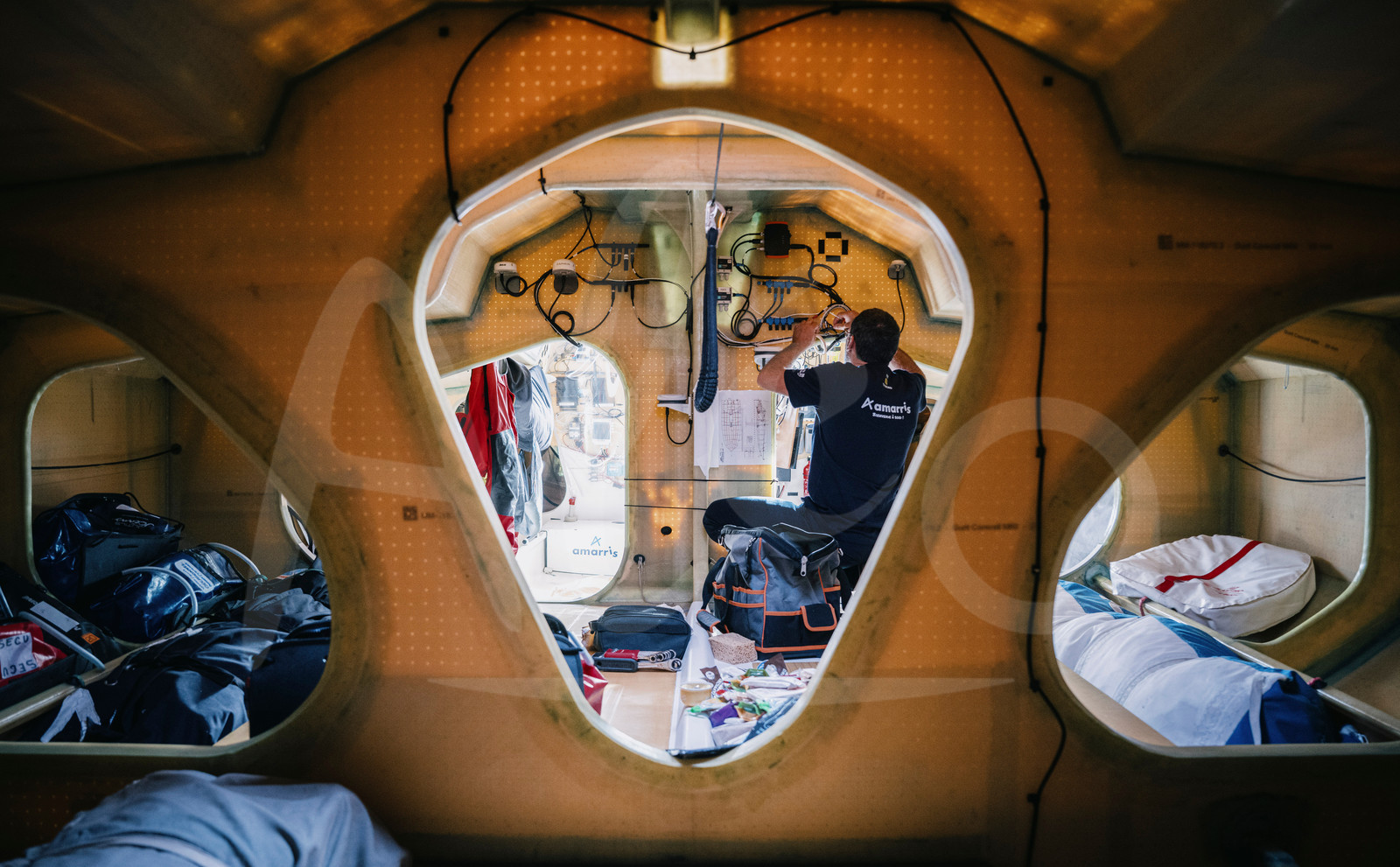 | Description | CORUNA, SPAIN, OCTOBER 30 : Class 40 Amarris team member is working on the electronics of the boat during the safety stop in La Coruña , on October 30, 2025. (Photo by Vincent Curutchet / Alea) |