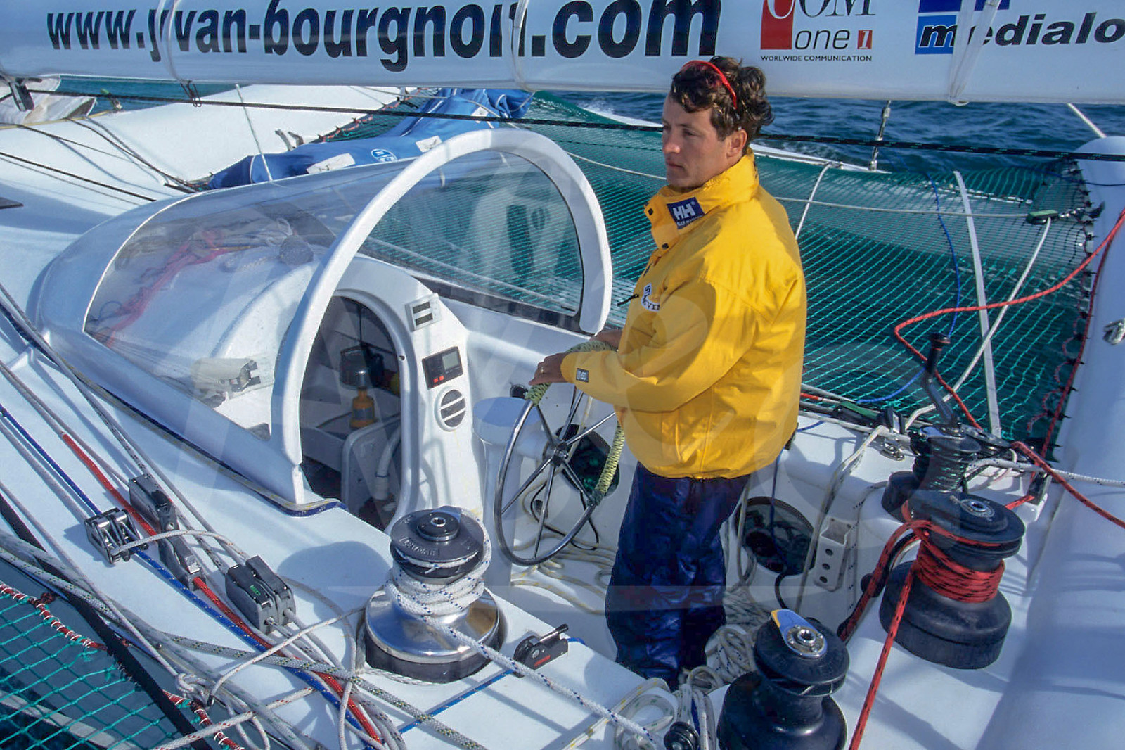 | Description | Yvan Bourgnon à l'entrainement à bord de son ORMA YPREMA avant le départ de la Route du Rhum 1998, baie de Quiberon, octobre 1998, Photo : Jean-Marie Liot / Alea.###.Yvan Bourgnon training onboard his ORMA YPREMA before the start of la Route du Rhum 1998, baie de Quiberon, october 1998, Photo : Jean-Marie Liot / Alea |