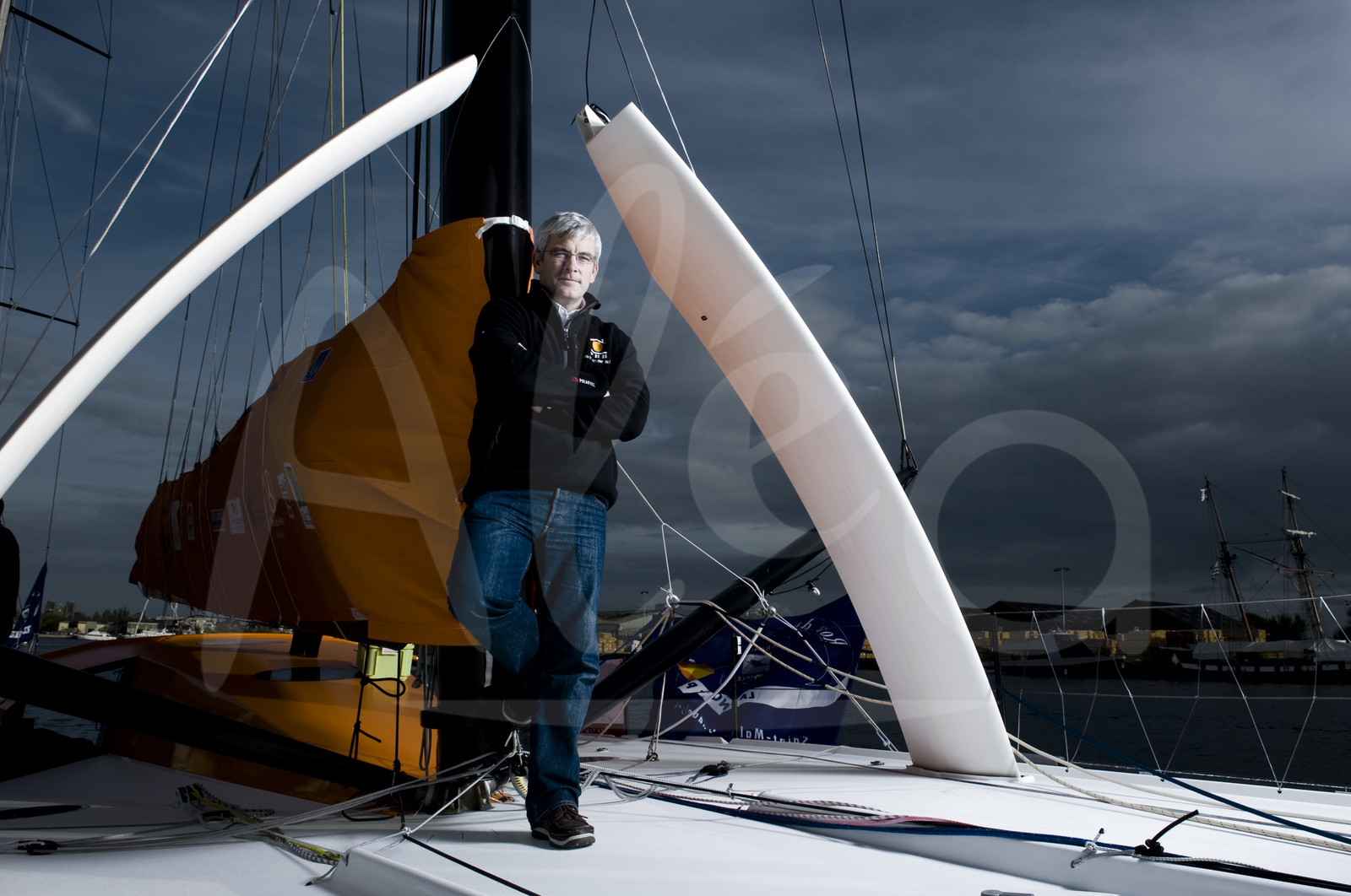 DescriptionSAILING - ROUTE DU RHUM 2010 - 28-31/10/2010 - SAINT MALO (FRA) - PHOTO : VINCENT CURUTCHET / ALEA IMOCA PRB - SKIPPER : VINCENT RIOU - AMBIANCE PORTRAIT