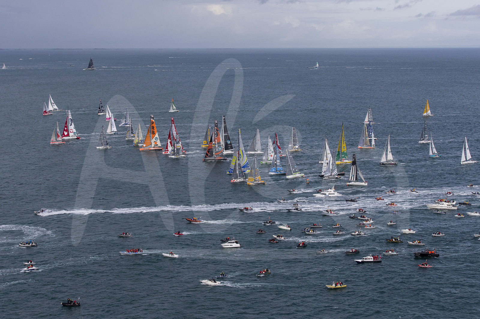 | Description | Monohull fleet in action during the Route du Rhum sailing race start on november 02, 2014 - Photo Jean Marie Liot / ALEA |