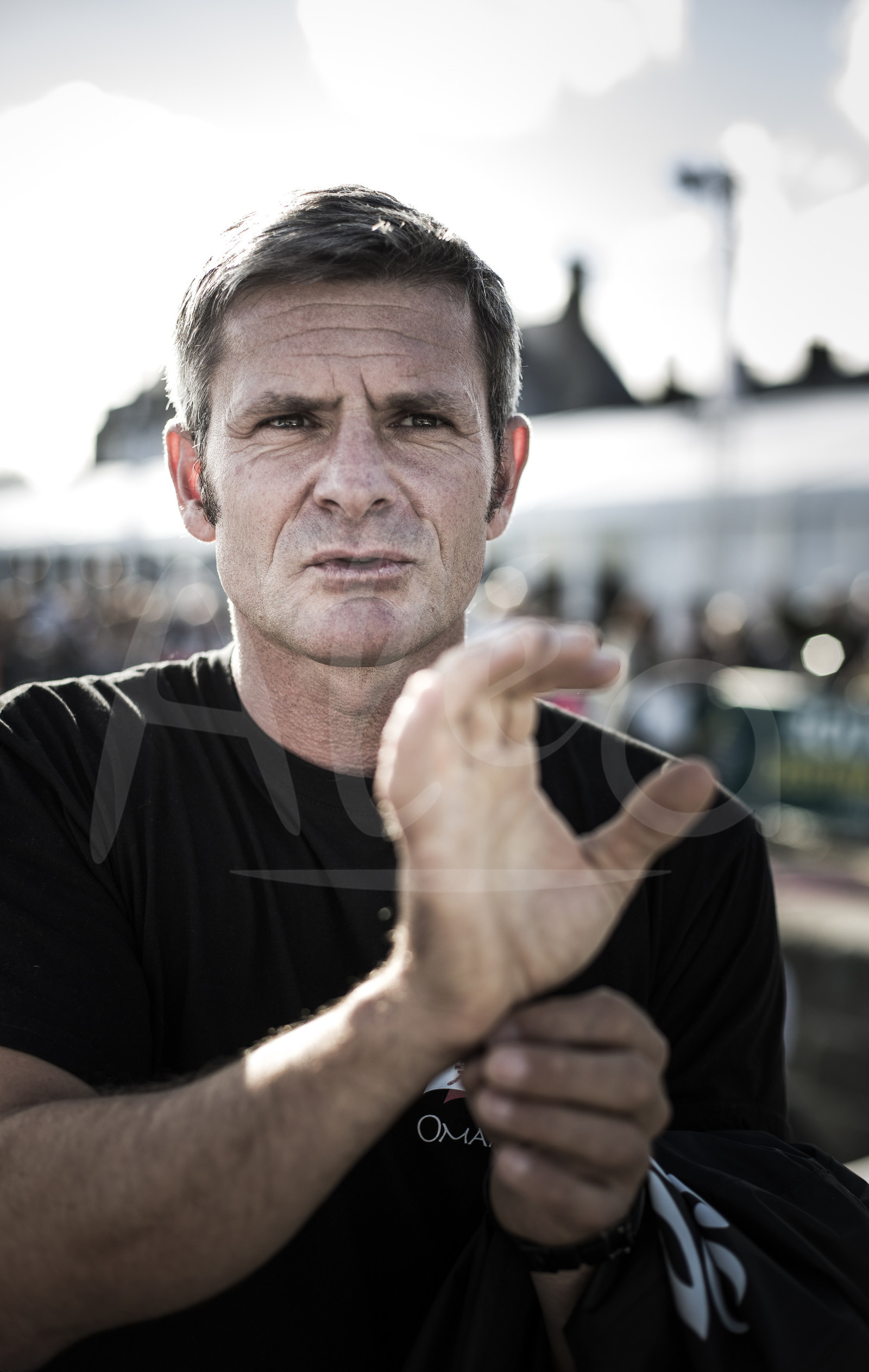 | Description | Sidney Gavignet, skipper of the Ultime Musandam-Oman Sail leaving pontoons to join offshore in Saint Malo on november 01, 2014 before the Route du Rhum sailing race to start on november 02, 2014 - Photo Mark Lloyd / ALEA |