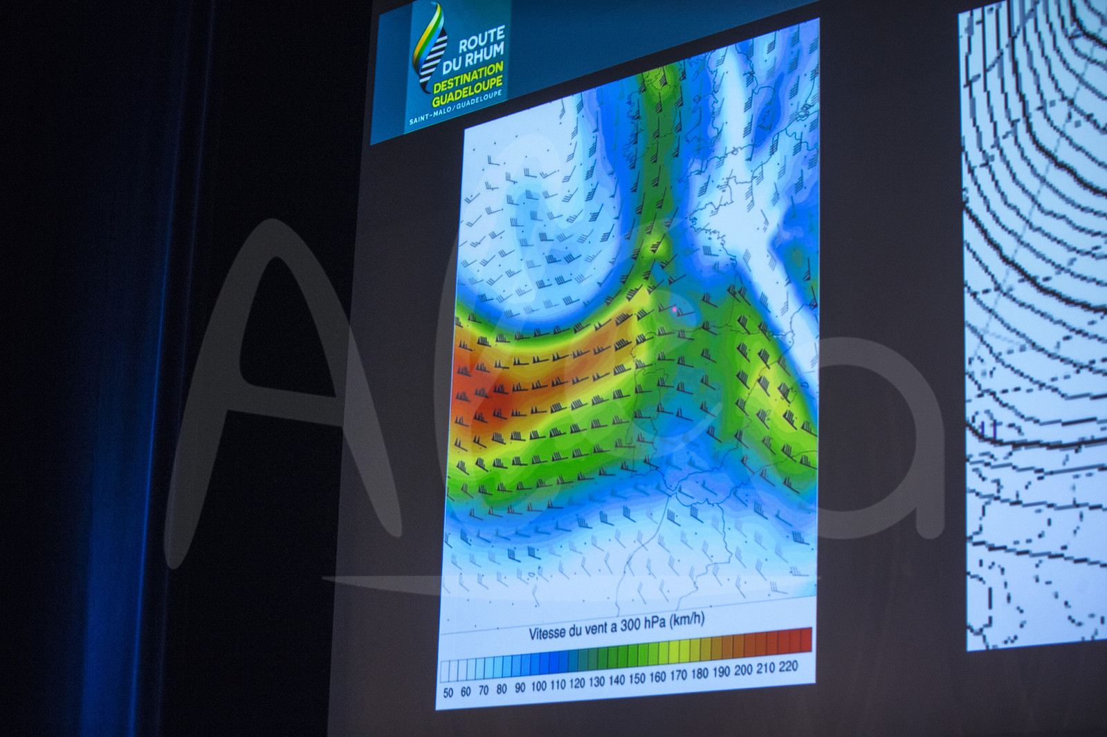 | Description | Weather briefing for the skippers during the pre-start of the Route du Rhum 2018, on November 3rd, 2018 in St-Malo, north Brittany, France - Photo Jean-Marie Liot / Alea |