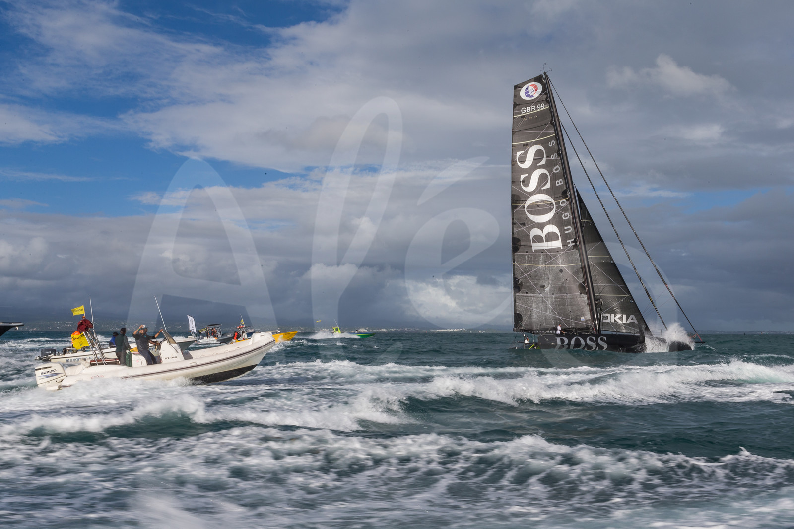 | Description | Hugo Boss, skipper Alex Thomson, 1st arrived but had a 24 hours penalty for having used his engine after he grounded on rocks in North Guadeloupe, took 3rd place after penalty, during arrival of the Route du Rhum 2018, on November 16th, 2018 in Pointe-a-Pitre, Guadeloupe, France - Photo Jean-Marie Liot / Alea |