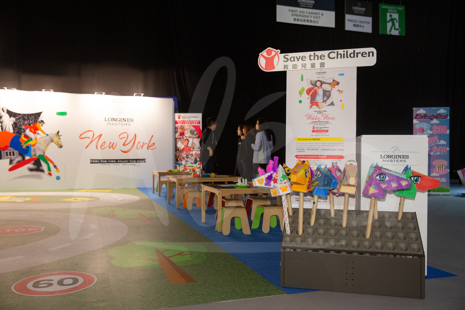 | Description | "Save the Children" operation box with Hobby horses at the Kid's club of the Longines Masters Hong Kong 2019, at Asia World Expo on February 16th, 2019 - Photo Isaac Lawrence / Mazarine / EEM |