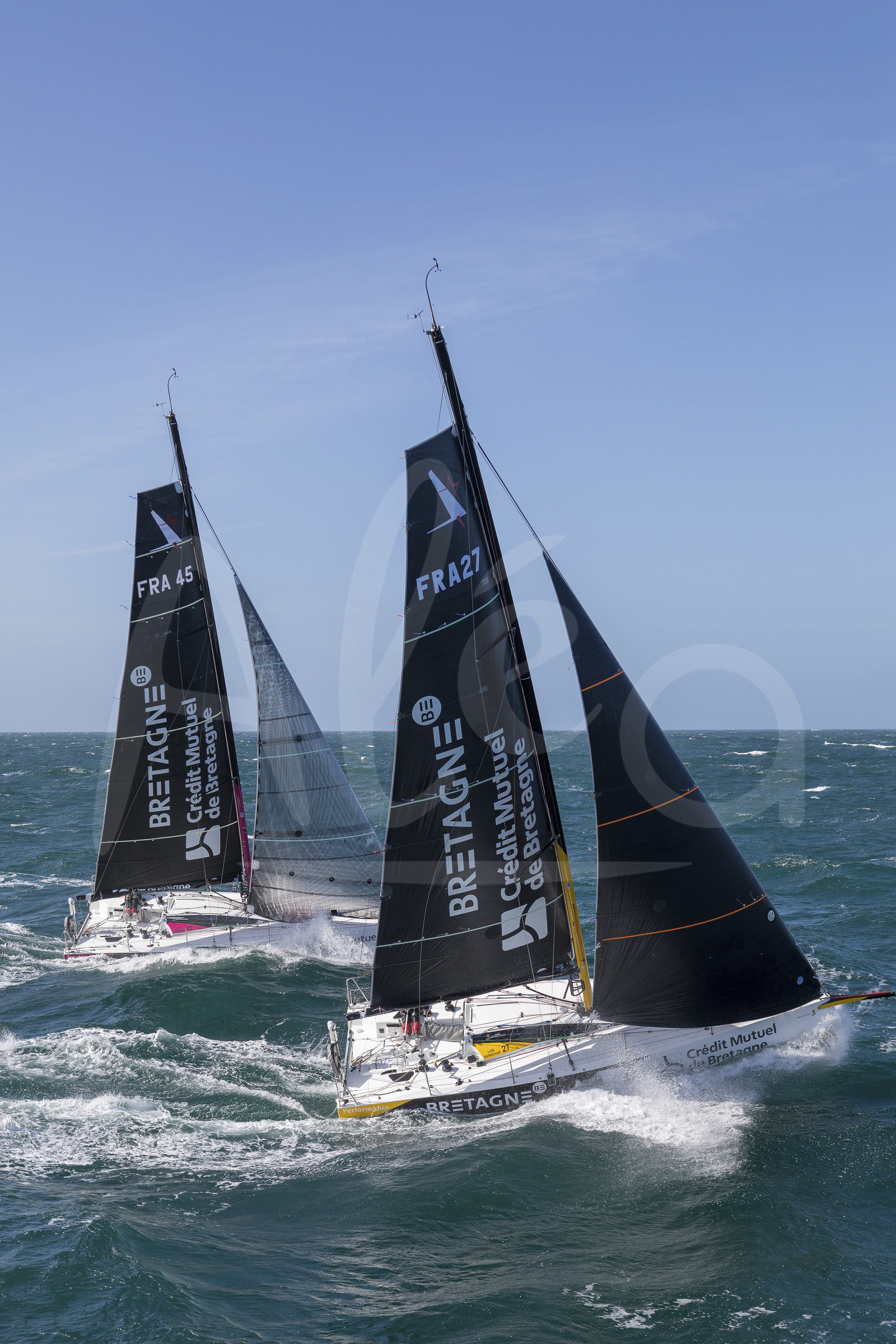 | Description | Figaro 3 Bretagne CMB, skipper Espoir Tom Laperche with skipper Performance Loïs Berrehar, training off les Iles Glenan, on March 10th, 2019 - Photo Jean-Marie Liot / Alea. |