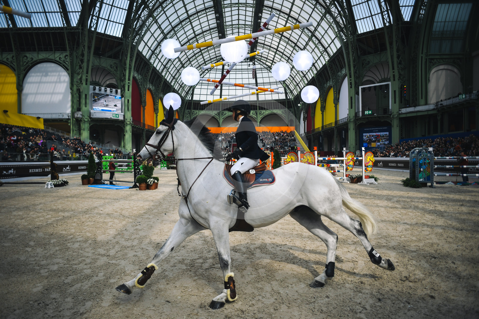 | Description | Netherlands's Lisa Bongers rides her horse Elixer as they compete in the "Talents d'Hermes" International Jumping Competition at the Grand Prix Hermes in the Grand Palais in Paris on March 24, 2019 - Photo Lucas Barioulet |
