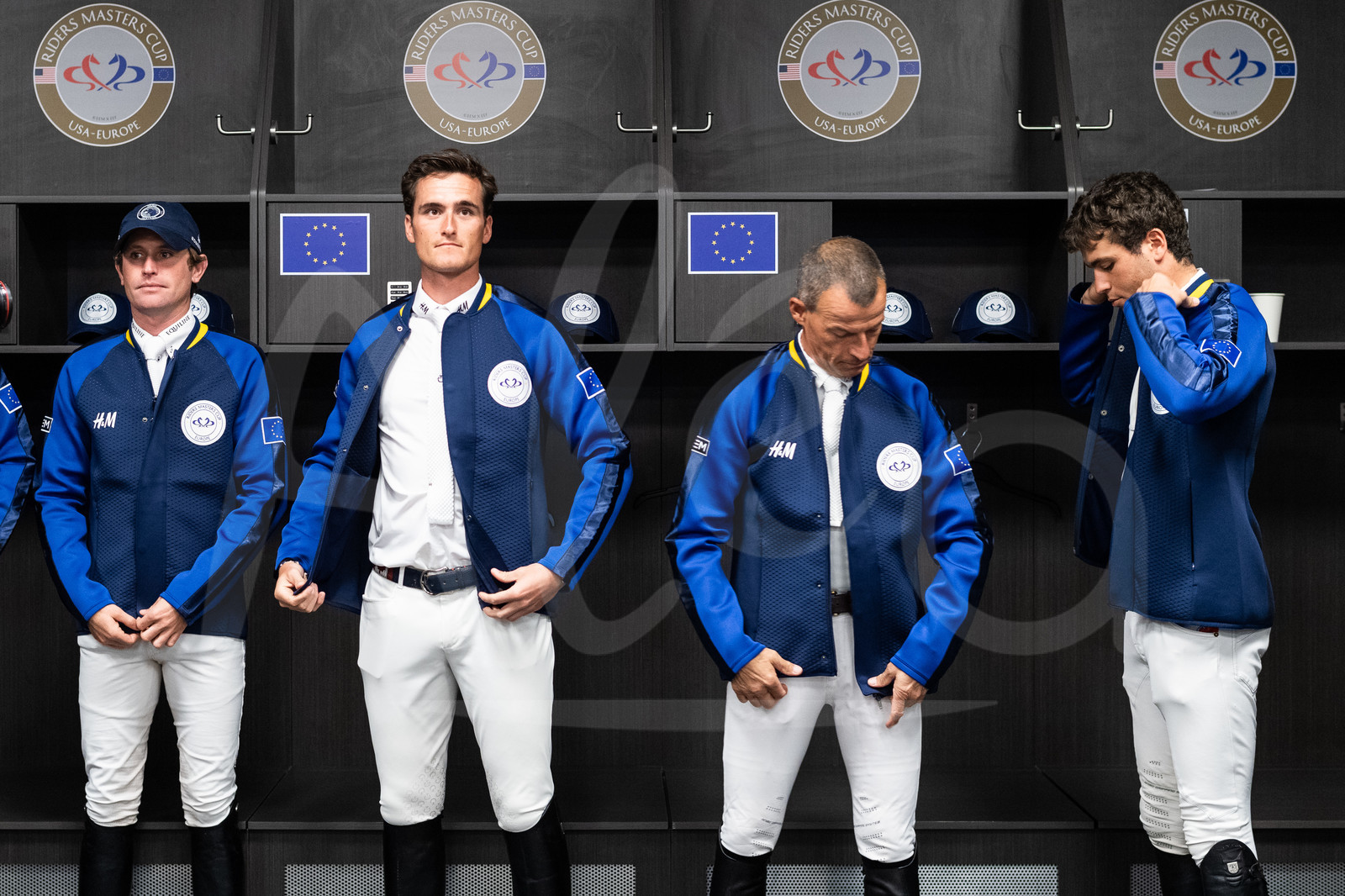 | Description | Official H&M suits for the Riders Masters Cup Team Europe, from left to right : KENNY Darragh, PHILIPPAERTS, Olivier / BEL, SCHWIZER, Pius / SUI, LEVY, Edward / FRA, in the dressing room, at the Longines Masters New York 2019, at NYCB Live, home of the Nassau Veteran's Memorial Coliseum, on April 25th, 2019 - Photo Jean-Louis Carli / Alea / EEM |
