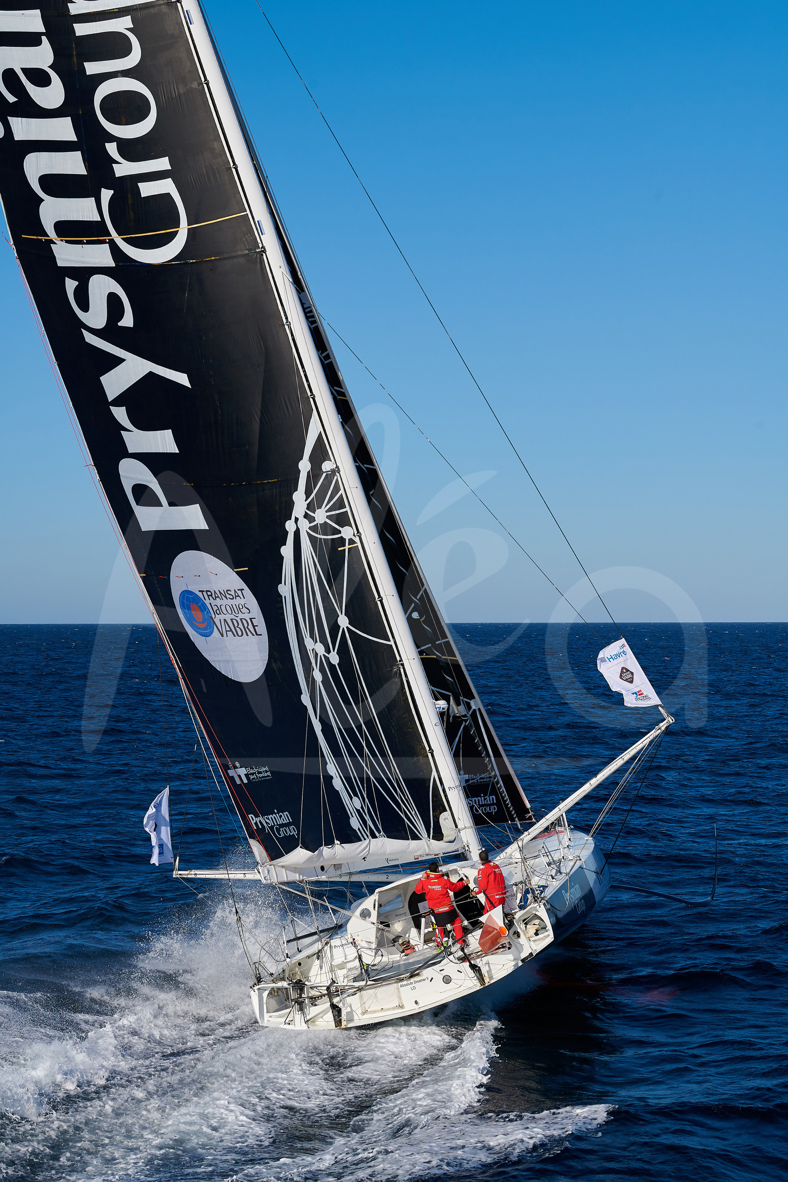 | Description | OFF LORIENT, FRANCE - SEPTEMBER 19: Italian skipper Giancarlo Pedote and French Anthony Marchand are training on the Imoca Prysmian Group, prior to the Transat Jacques Vabre, sailing race in duo from Le Havre to Bahia, on September 19, 2019, off Lorient, France. (Photo by Yvan Zedda/Alea) |