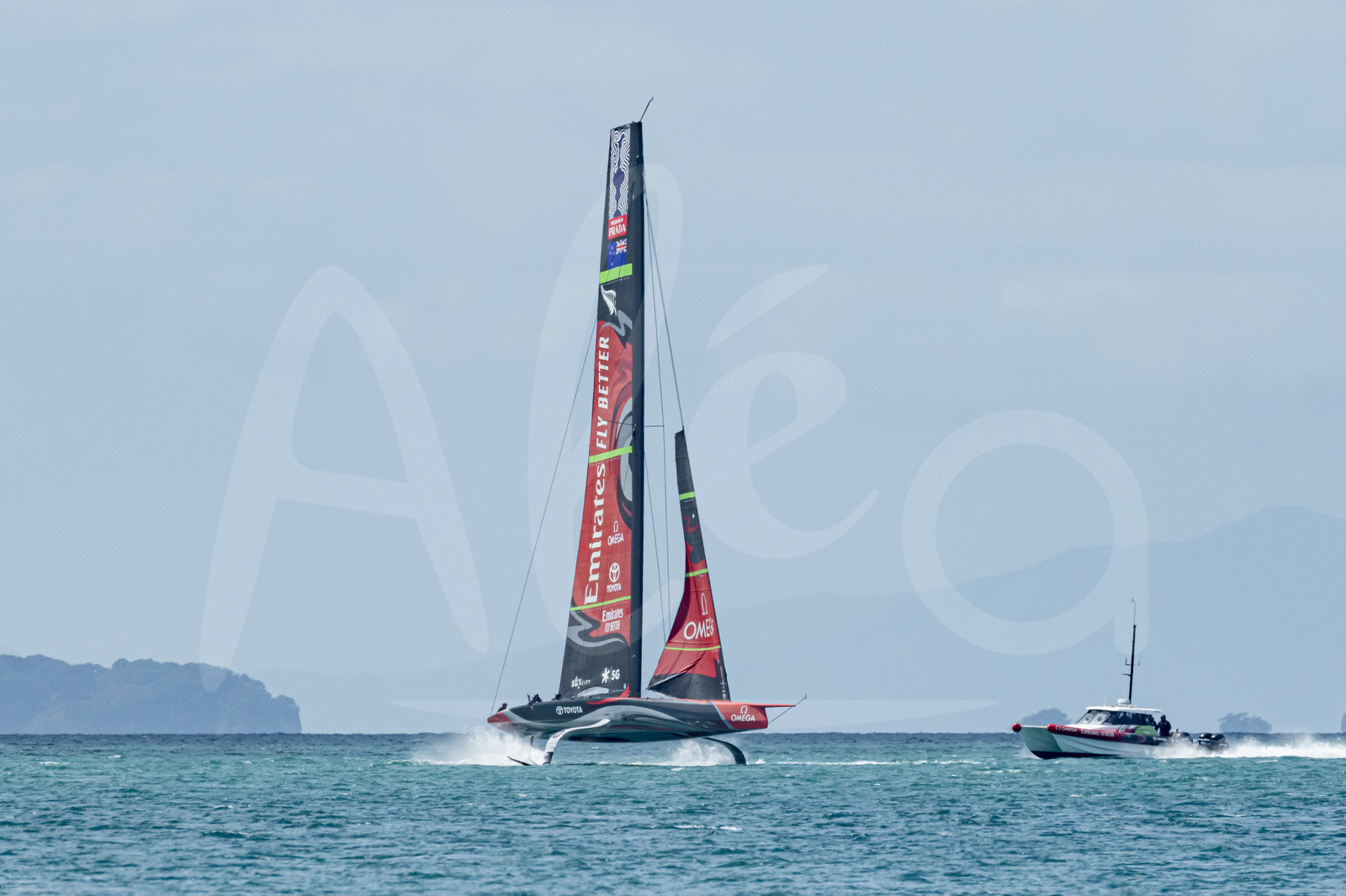 | Description | AUCKLAND, NEW ZEALAND - OCTOBER 4: Emirates Team New Zealand is testing their AC75 foiling monohull "The Aihe"on the Hauraki Gulf off Auckland, on October 4, 2019. ETNZ is training for the America's Cup 2021. (Photo by Chris Cameron/Alea) |