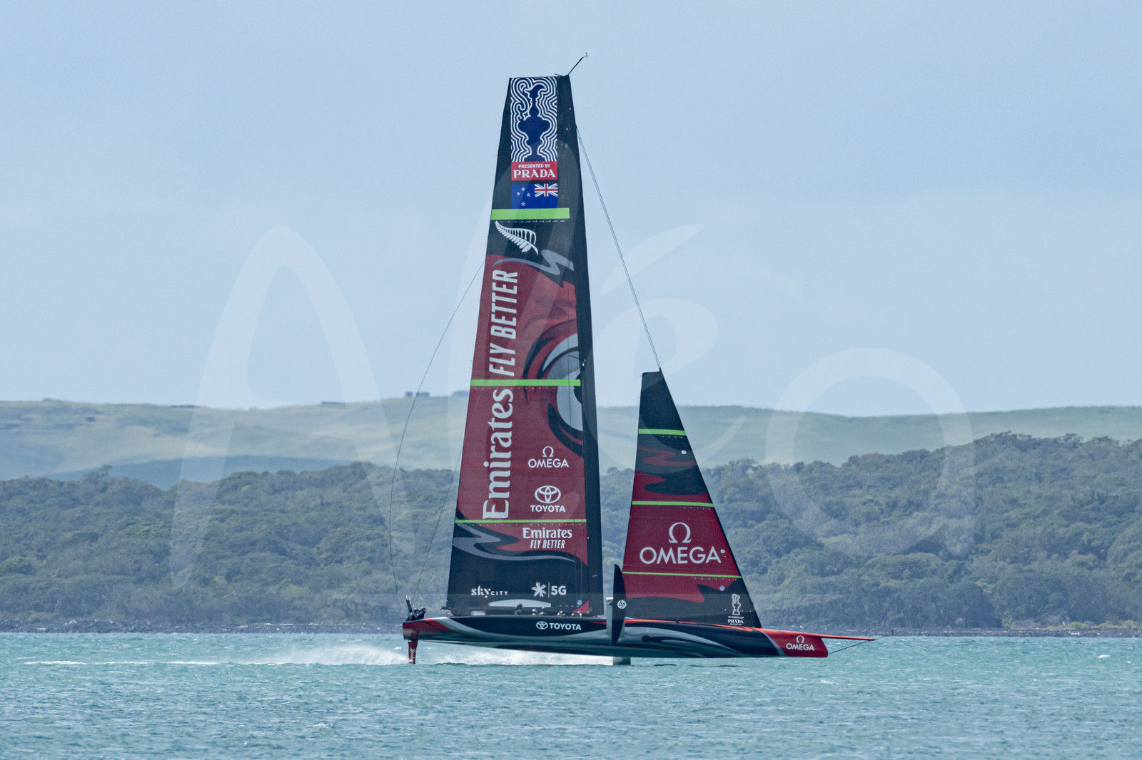 | Description | AUCKLAND, NEW ZEALAND - OCTOBER 4: Emirates Team New Zealand is testing their AC75 foiling monohull "The Aihe"on the Hauraki Gulf off Auckland, on October 4, 2019. ETNZ is training for the America's Cup 2021. (Photo by Chris Cameron/Alea) |