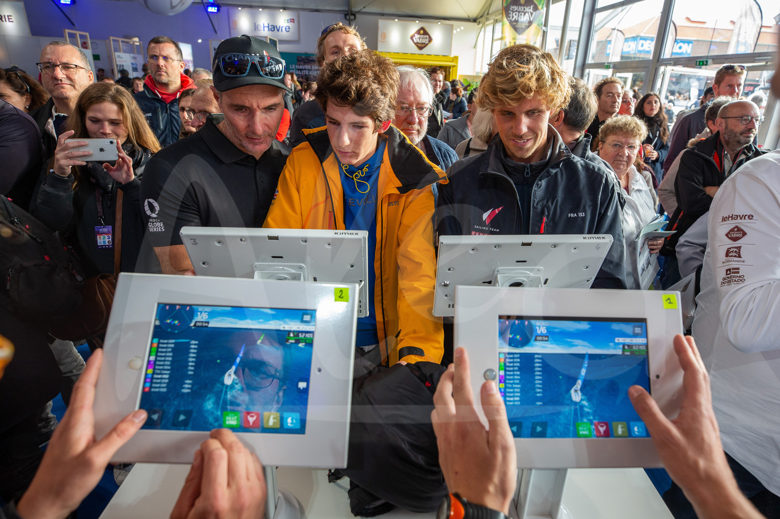 | Description | LE HAVRE, FRANCE - OCTOBER 19: Skippers Jeremie Beyou and son compete in the e-sailing competition during pre-start of the Transat Jacques Vabre 2019, duo sailing race from Le Havre, France, to Salvador de Bahia, Brazil, on October 19, 2019 in Le Havre, France. (Photo by Jean-Marie Liot/Alea) |