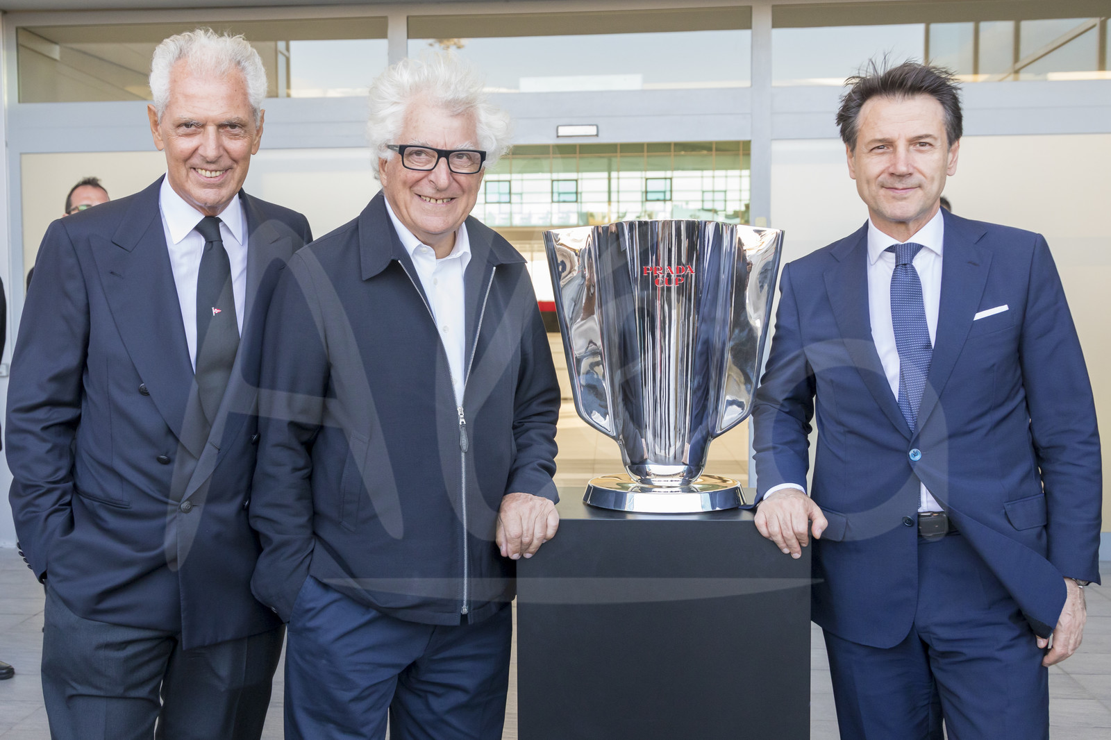 | Description | CAGLIARI, ITALY - OCTOBER 02: Marco Tronchetti Provera, Patrizio Bertelli and Prime Minister Giuseppe Conte are posing during launch of Luna Rossa AC75 Prada Pirelli monohull for the America's Cup on October 2, 2019, in Cagliari, Italy. (Photo by Studio Borlenghi/Alea) |